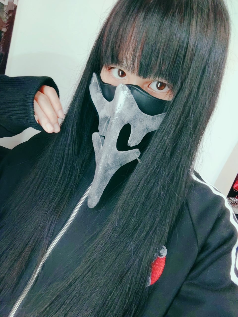 ペストマスク部分はボタンで脱着ができ、黒いマスクとして普段使いも可能です。